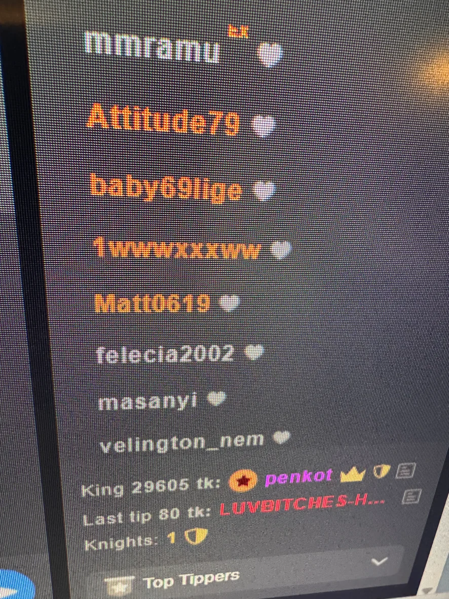 아헤가오, 블로우잡, 도기 스타일, 음란한 대화, 에로틱 댄스, 플래싱, 핸드잡, 하이힐, 스모킹, 스팽킹, 스트립쇼, 상의탈의, 치마속, 트월킹, 애널, 자지 평점, 핑거링, 풋 페티시, 라텍스, 가죽, 자위, 니플 기구, 나일론, 롤플레이, 젖치기, 오르가즘, 애널 기구, 젖소, 스위치, 딜도 또는 바이브레이터, 하드코어, 자위행위 지침, 미스트레스(여주인), 굴욕, 오일 쇼, 분수, 스트랩온, 크림파이, 섹스 기구, 딥스로트