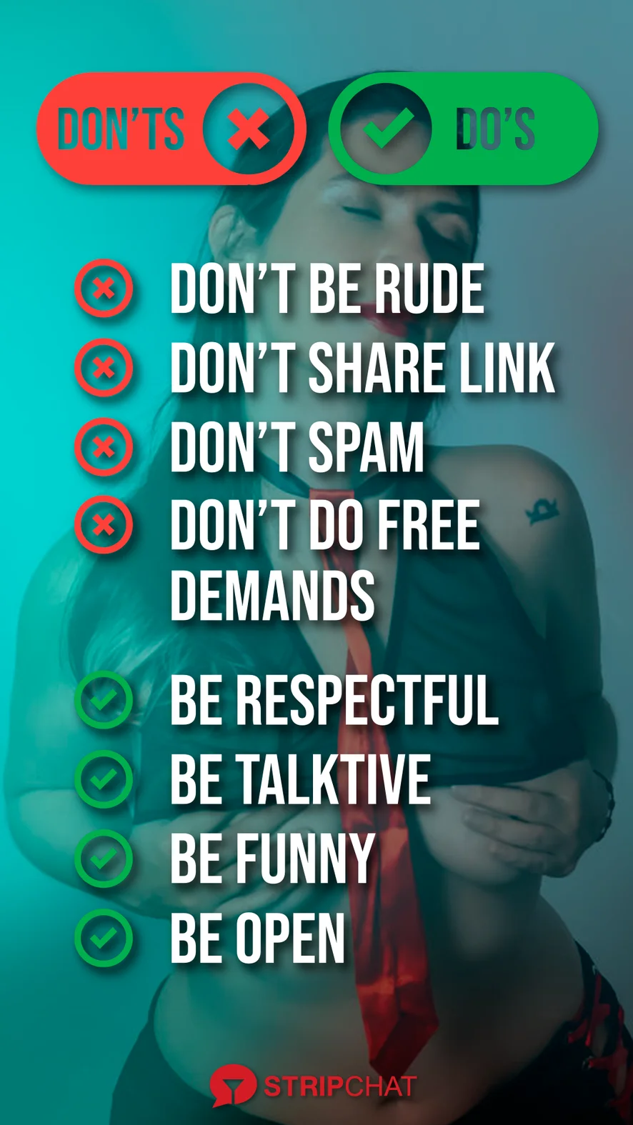 아헤가오, 블로우잡, 카멜토우, 딜도 또는 바이브레이터, 도기 스타일, 핸드잡, 치마속, 상의탈의, 에로틱 댄스, 스팽킹, 스모킹, 플래싱, 요리, 하이힐, 젖소, 크림파이, 딥스로트, 음란한 대화, 페이스씨팅, 핑거링, 재갈, 게 이핑, 자위, 니플 기구, 오피스, 오일 쇼, 오르가즘, 젖치기, 스트립쇼, 하드코어, 굴욕, 샤워, 분수