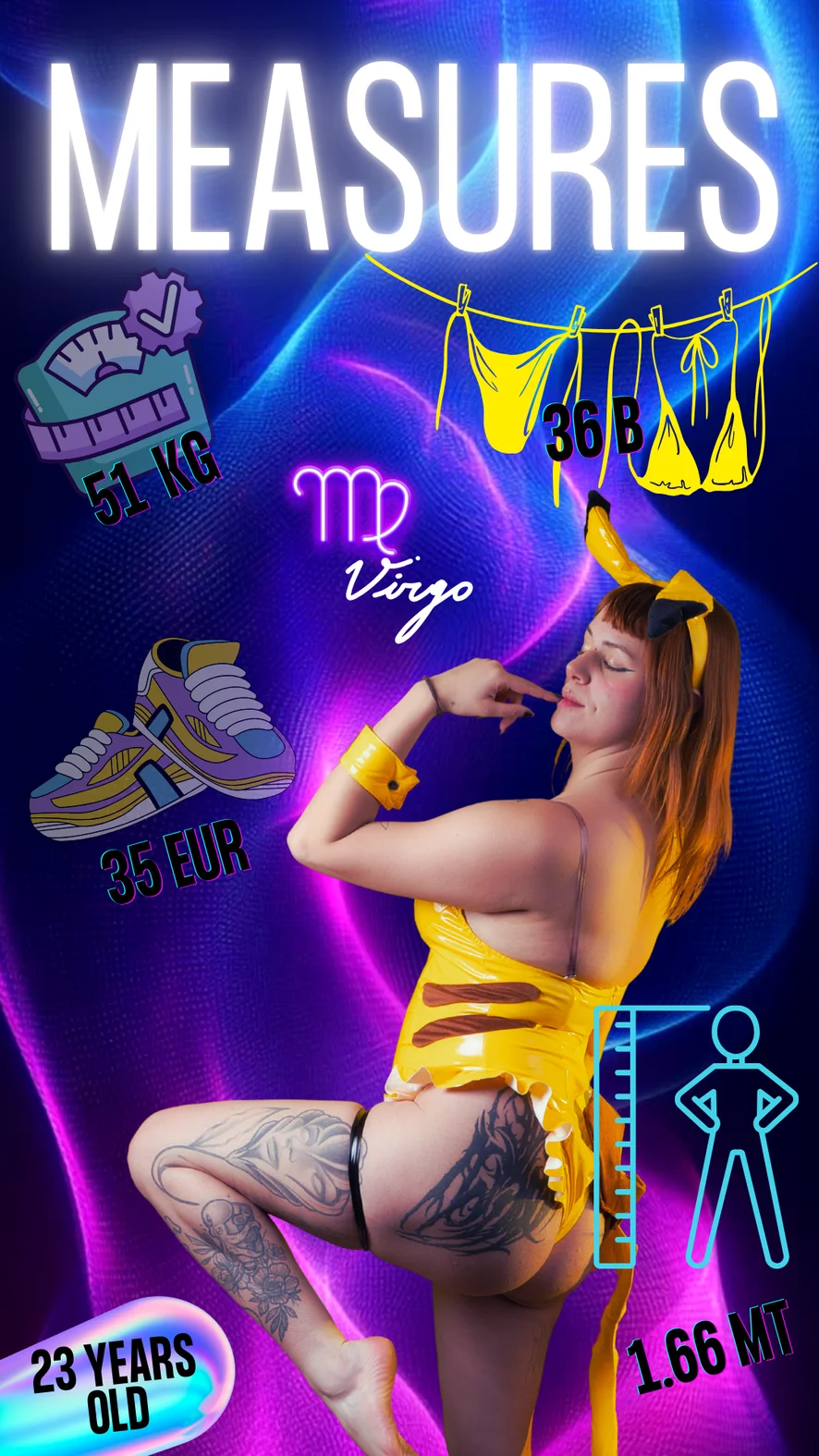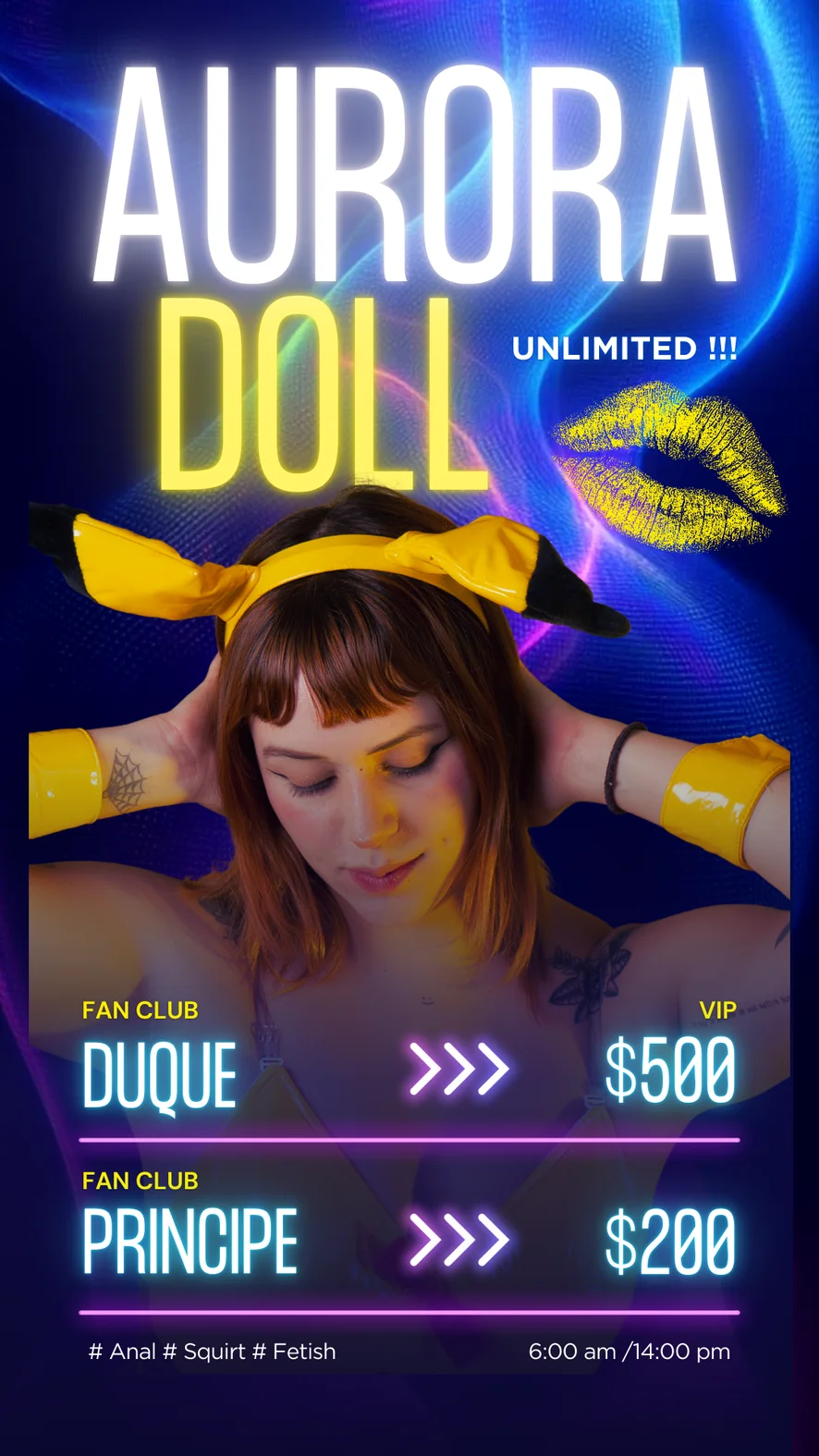 도기 스타일, 아헤가오, 스팽킹, 에로틱 댄스, 카멜토우, 가죽, 핑거링, 딜도 또는 바이브레이터, 음란한 대화, 샤워, 스트립쇼, 풋 페티시, 자위, 애널 기구, 젖치기, 요가, 젖소, 트월킹, 상의탈의, 하이힐, 분수, 오일 쇼, 하드코어, 69자세, 패깅, 핸드잡, 오르가즘, 오피스, 애널, 굴욕, 페이셜, 플래싱, 스모킹, 딥스로트, 자위행위 지침, 롤플레이, 섹스 기구, 니플 기구, 블로우잡, 재갈, 크림파이, 더블 페네트레이션, 페이스씨팅, 피스팅, 엉덩이에서 입까지