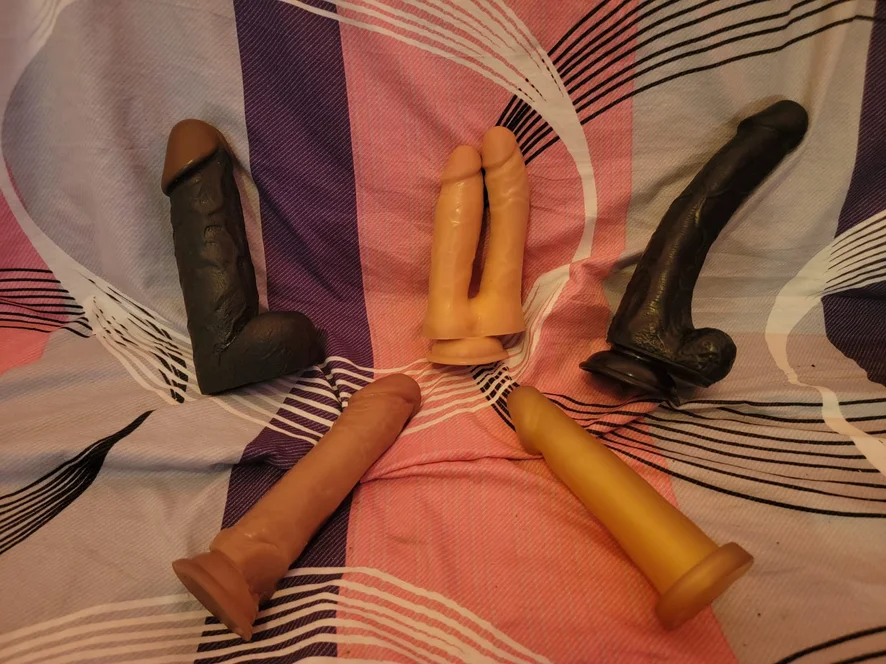 mes chers dildos .... des simples au long noir en passant par 5,5cm de diamètre ...sans oublier la double