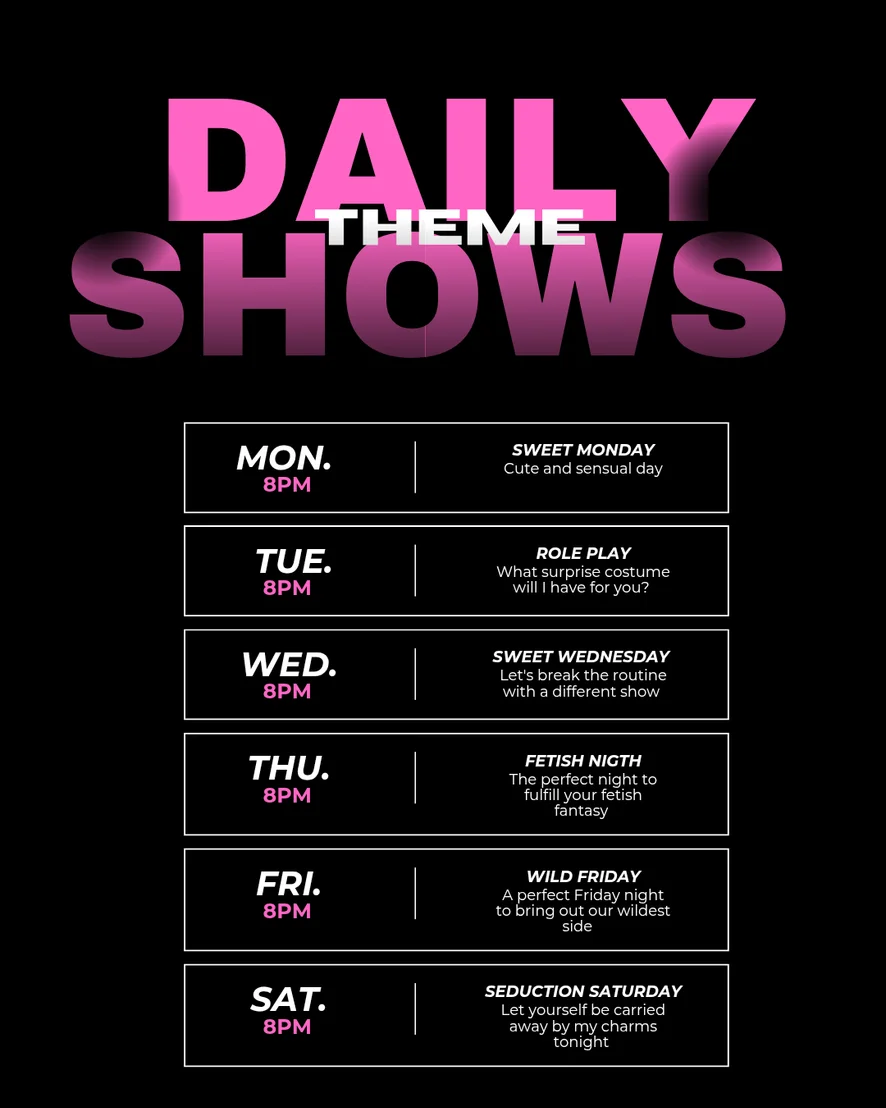 도기 스타일, 아헤가오, 스팽킹, 에로틱 댄스, 스트립쇼, 페이스씨팅, 플래싱, 블로우잡, 자위, 오일 쇼, 상 의탈의, 하이힐, 나일론, 치마속, Sexting, 카멜토우, 핑거링, 음란한 대화, 풋 페티시, 롤플레이, 트월킹, 핸드잡, 애널, 더블 페네트레이션, 자지 평점, 애널 기구, 하드코어, 분수, 재갈, 코르셋, 스위치, 자위행위 지침, 굴욕, 크림파이, 딜도 또는 바이브레이터, 딥스로트, 스트랩온