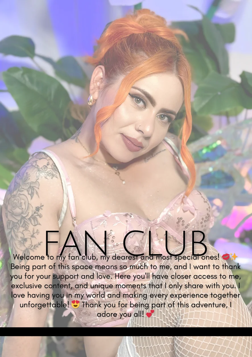 ¡Bienvenidos a mi club de fans, mis queridos más especiales! 💋✨ Ser parte de este espacio significa mucho para mí y quiero agradecerles su apoyo y cariño. Aquí tendrán un acceso más cercano a mí, contenido exclusivo y momentos únicos que solo comparto con ustedes. ¡Me encanta tenerlos en mi mundo y hacer que cada experiencia juntos sea inolvidable! 😍 ¡Gracias por ser parte de esta aventura, los adoro! 💕