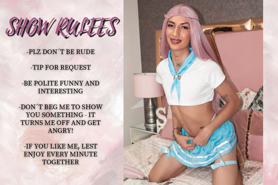 도기 스타일, 스팽킹, 에로틱 댄스, 카멜토우, 핑거링, 딜도 또는 바이브레이터, 스트립쇼, 사정, 풋 페티시, 스모킹, 딥스로트, 굴욕, 섹스 기구, 블로우잡, 롤플레이, 오르가즘, SPH(작은 음경 능욕), 하드코어, 오일 쇼, 애널, CEI(정액 먹기 교육), 자지 평점, 엉덩이에서 입까지, 음란한 대화, 더블 페네트레이션, 애널 기구, 핸드잡, 자위, 하이힐