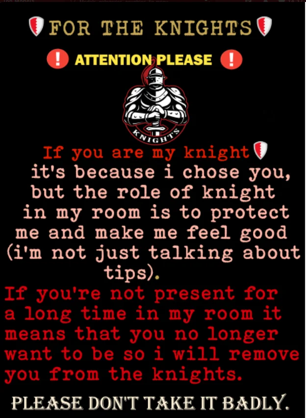 if u are a knigth in my room act like one cause will be removing unworthy knigths 🙏🙏🙏