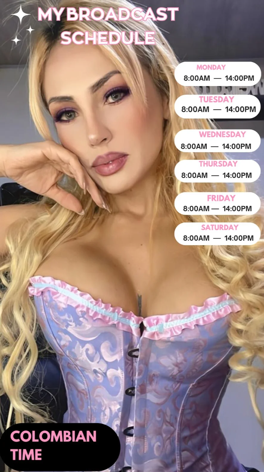 도기 스타일, 아헤가오, 미스트레스(여주인), 스팽킹, 에로틱 댄스, 카멜토우, 핑거링, 스트립쇼, 풋 페티시, 게이핑, 자위, 하이힐, 상의탈의, anal 500, 스위치, 딥스로트, 섹스 기구, 블로우잡, 젖치기, 하드코어, 젖소, 트월킹, 요가, 오피스, 애널 기구, 딜도 또는 바이브레이터