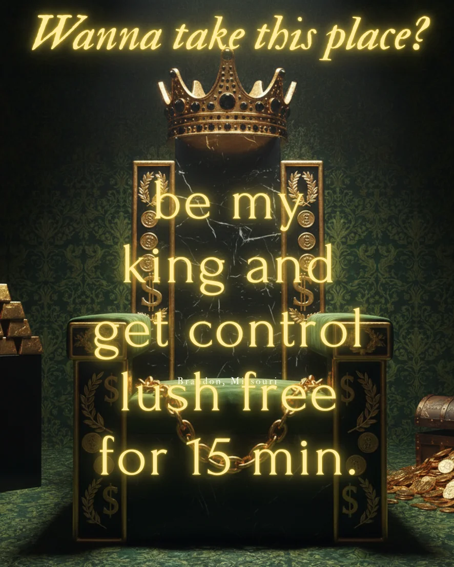 be my king, go to the top! and take my control lush for 15 min!! FREE!!