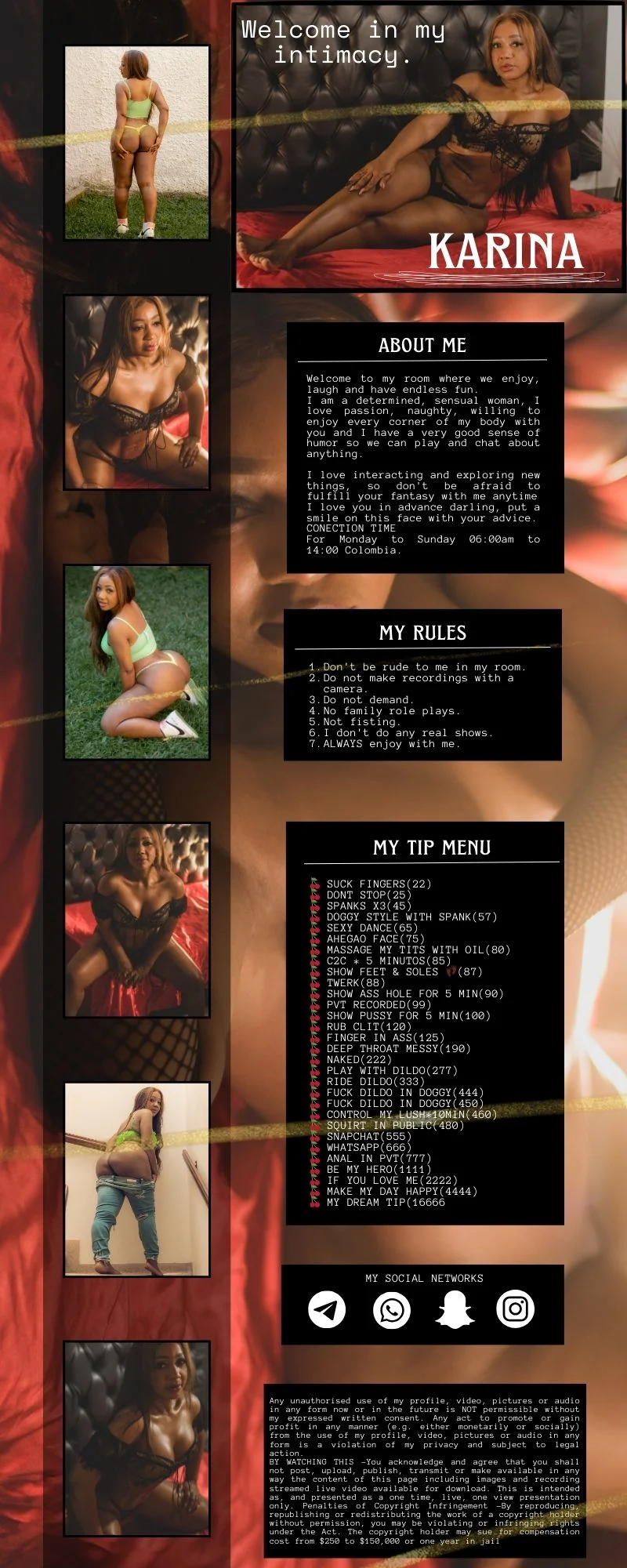 도기 스타일, 애널, 스팽킹, 딜도 또는 바이브레이터, 스트립쇼, 아헤가오, 에로틱 댄스, 카멜토우, 트월킹, 나일론, eroctic dance, 핑거링, 자위, 음란한 대화, 딥스로트, 상의탈의, 스모킹, slap on tits, slap on pussy, control lush, 오일 쇼, 더블 페네트레이션, 블로우잡, 젖치기, 젖소, 피스팅, 애널 기구, 니플 기구, 섹스 기구, 분수